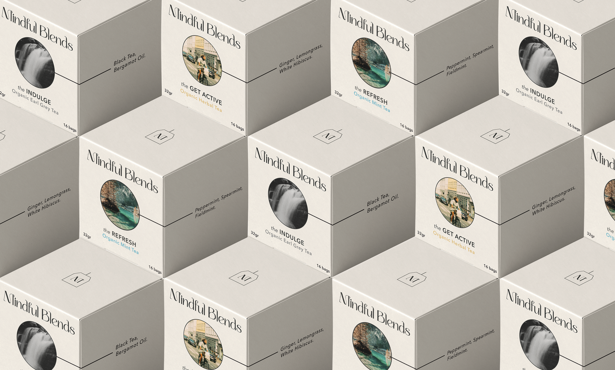 Mindful Blends is an organic tea company. This self-initiated project consisted on designing a visual identity and packaging for the different infusions of the brand.